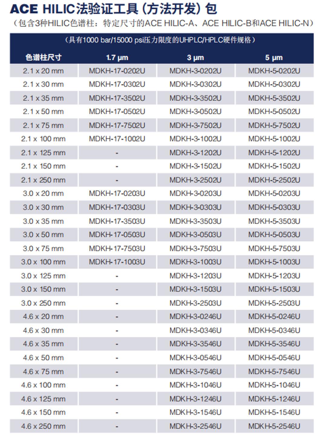 可選擇中性或者酸性、堿性都可以。ACE提供市面常見的酸性(Hilic-A)、堿性(Hilic-B)、中性(Hilic-A)三種固定相Hilic色譜柱方法開發(fā)包,可作為分析工作者的首選工具。