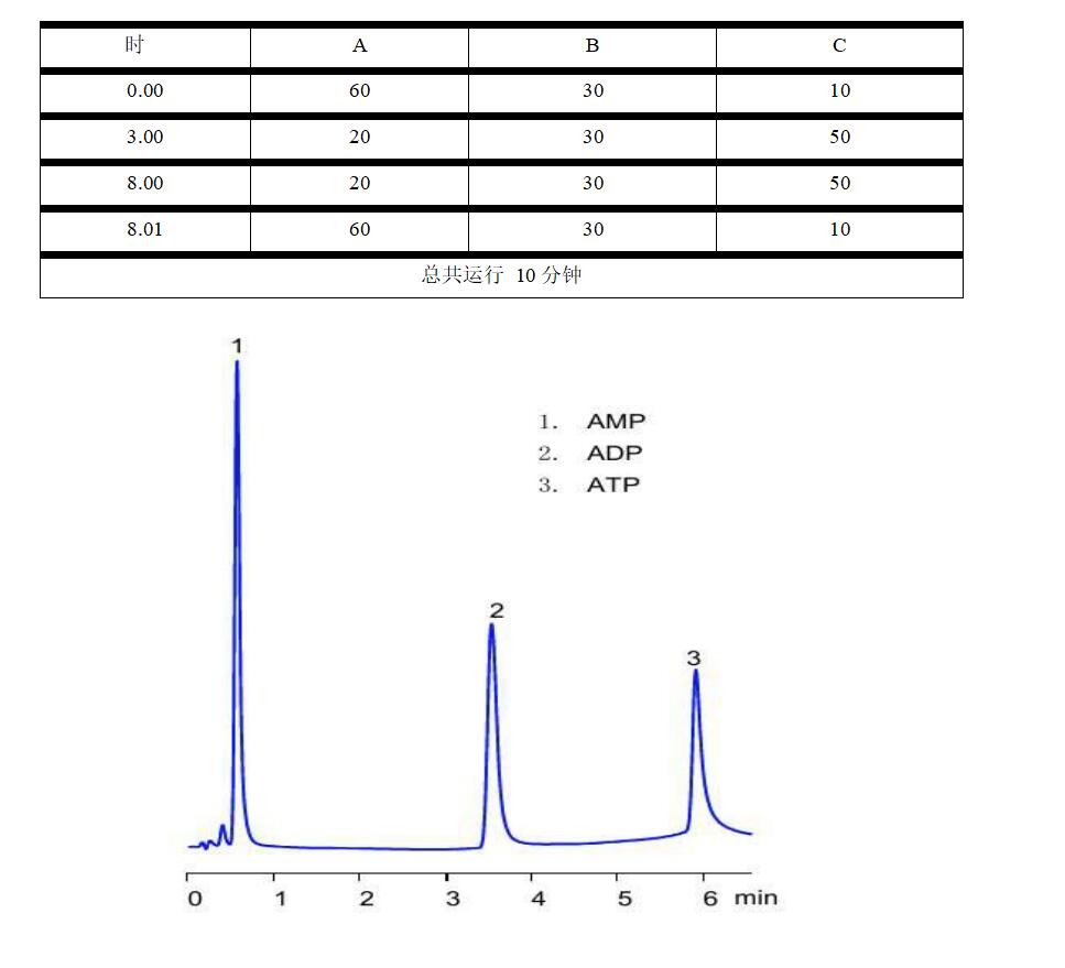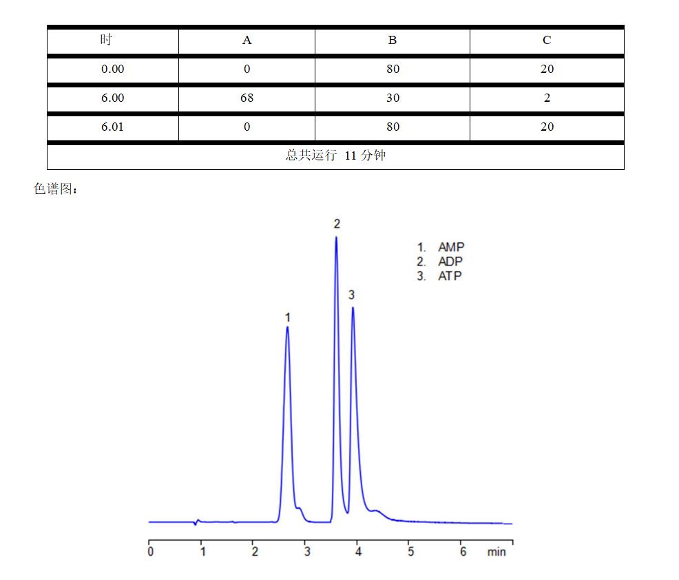 Comixsil HCS 與 HAX 關于 AMP ADP ATP 的 HPLC 分析研究 App ID: FLM-C240010 色譜柱:Comixsil HCS 3u 100*3.0mm (貨號: FMD-HCS3-YONU) 流速:0.6 mL/min 檢測波 :275nm 流動相:A:水 B:乙腈 C:200mM 乙酸 (pH5.5)