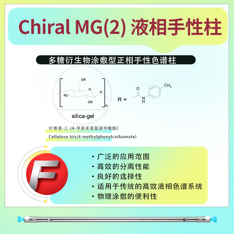 - Chiral MG(2) 液相手性色譜柱 菲羅門Chiral MG(2)液相手性色譜柱是菲羅門公司FLM? Chiral系列中的一種涂敷型多糖衍生物手性柱。