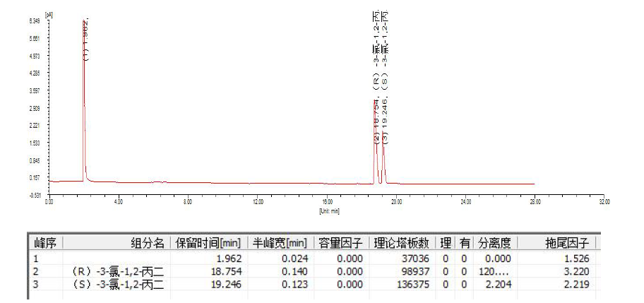 App ID: FLM-F250001 FBX-DEX DET Beta 氣相手性柱對(R,S)-3-氯-1,2-丙二醇的手性分離 色譜柱:FBX-DEX DET Beta 30m×0.25mm×0.25μm 貨號:BDET-025-025-30 色譜條件:咨詢 樣品:(S)-3-氯-1,2-丙二醇和(R)-3-氯-1,2-丙二醇,甲醇稀釋為濃度1%樣品 進樣量:0.3ul 色譜圖(1):R 構型先出峰,S 構型后出峰,分離度2.2。R 與S 1:1 配比