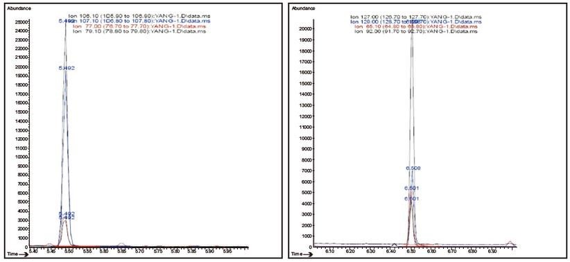 圖 5 2,4-二氨基甲苯色譜圖 圖 6 2,4-二氨基苯甲醚色譜圖
