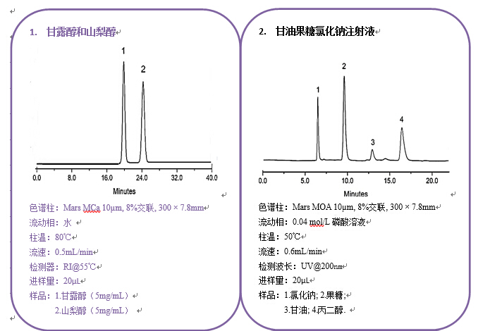 流動(dòng)相:H2O 流速:0.6 mL/min 檢測(cè)器:RID 柱溫:80 ℃ |